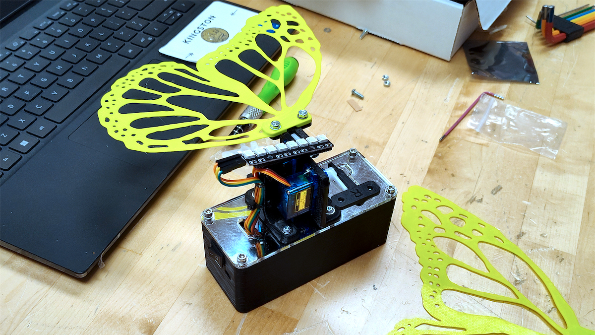 We run educational workshops! In Summer 2025 we conducted a 6-session Robot Butterfly workshop, sponsored by Awesome Kingston, for 7 participants to build their own Robot Butterfly kit at the Boys and Girls Club - STEM & Robotics Centre in Kingston, Ontario.